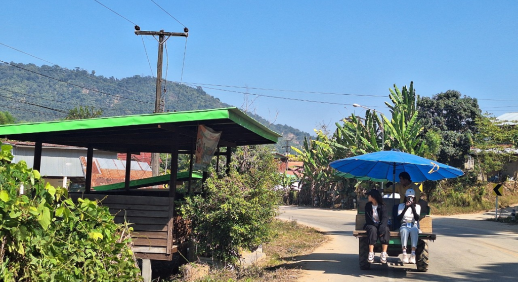 09:30点,到送Khiri Wong Kot社区 (A1) 坐Yi-Tak车穿越溪流进入。