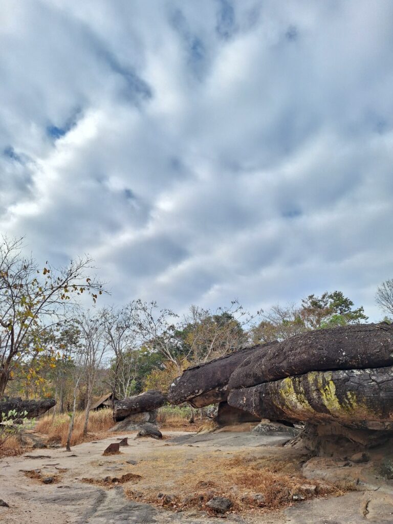 是时候下山了。我们将继续前往Phu Phra Bat国家公园。体验西马伊桑文化。德瓦拉瓦蒂时期的历史遗迹。泰国的新世界遗产。也是乌冬他尼继班江之后的第二个世界遗产。 首先,我们去旅游中心买了一张票,每人只需20泰铢,然后我们步行400米。 面前的古老岩石是历史遗迹,反映了当时人们的文化、生活方式和信仰。如果你来乌冬,一定要参观泰国的新世界遗产。