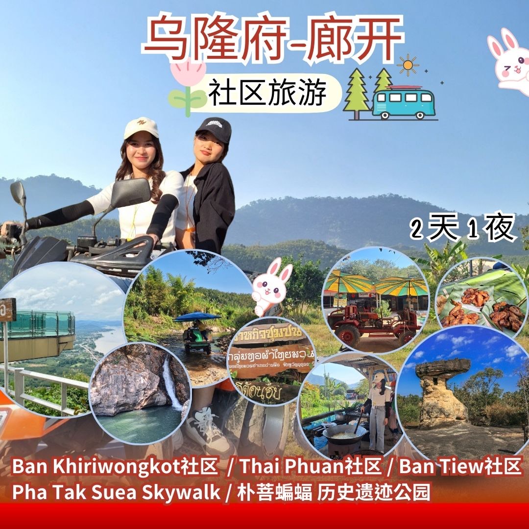 第二天 Khiriwong kot 社区 – Pha Tak Suea Skywalk – Ban Phue Thai Phuan社区博物馆– 朴菩蝙蝠 历史遗迹公园 – Ban Tiew社区 – 乌隆他尼机场