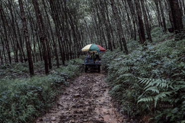 09:30 点,前往到Ban Khiri Wongkot社区 (A1) 坐E-TAk车穿过溪流前进。