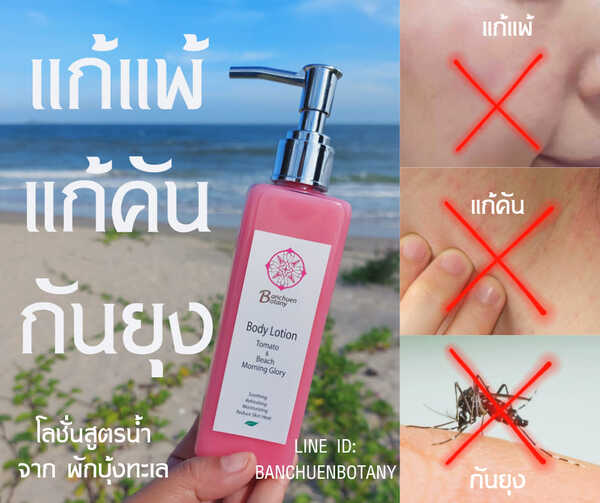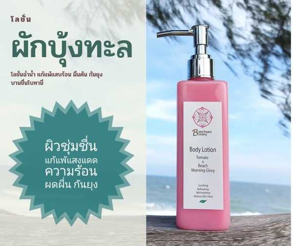 โลชั่นผักบุ้งทะเล ด้วยสารสกัดจากผักบุ้งทะเลที่มีคุณสมบัติต้านอนุมูลอิสระ ช่วยแก้แพ้แสงแดด ความร้อน และมลภาวะ ลดความเสี่ยงจากการเกิดจุดด่างดำและริ้วรอยก่อนวัย