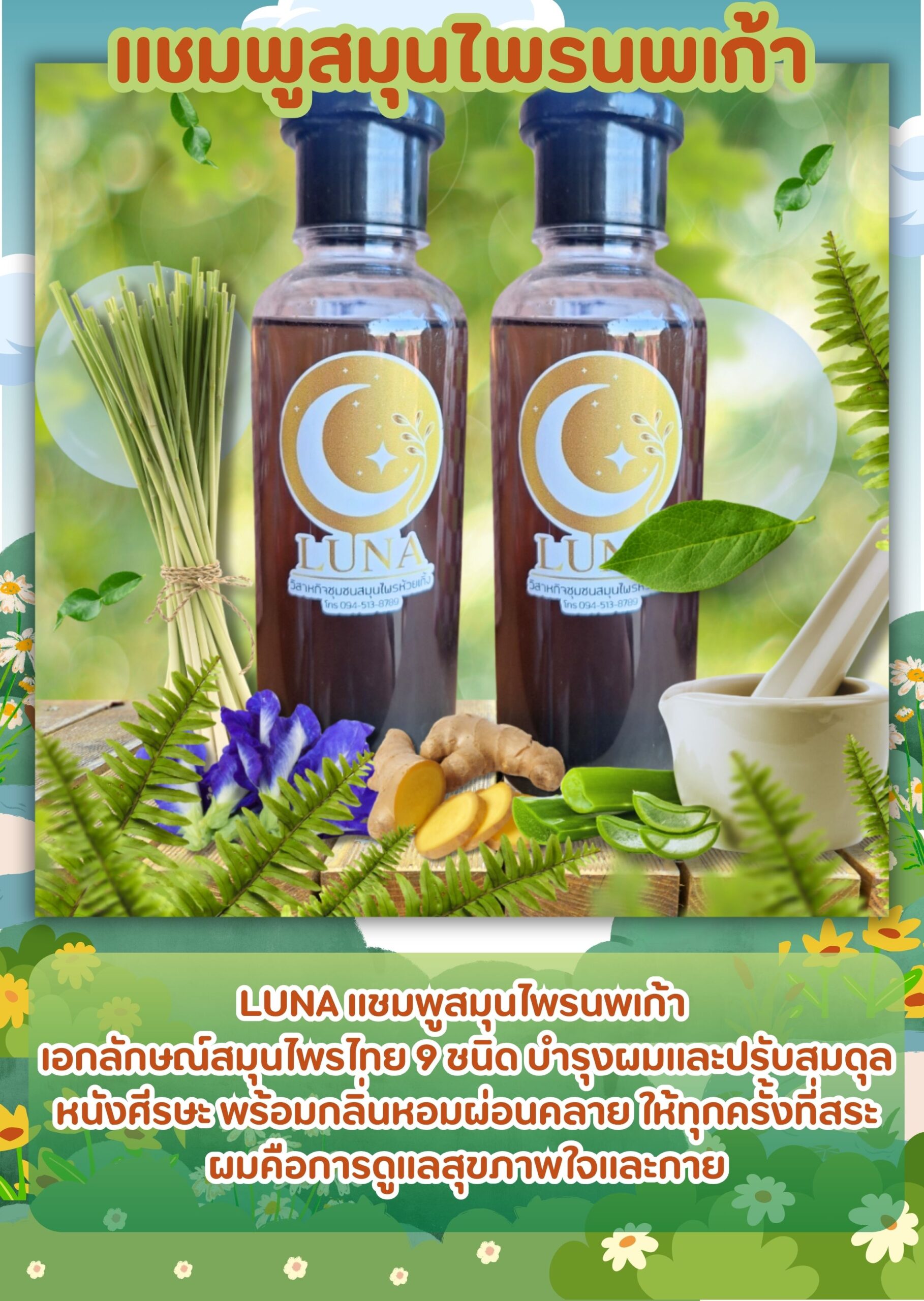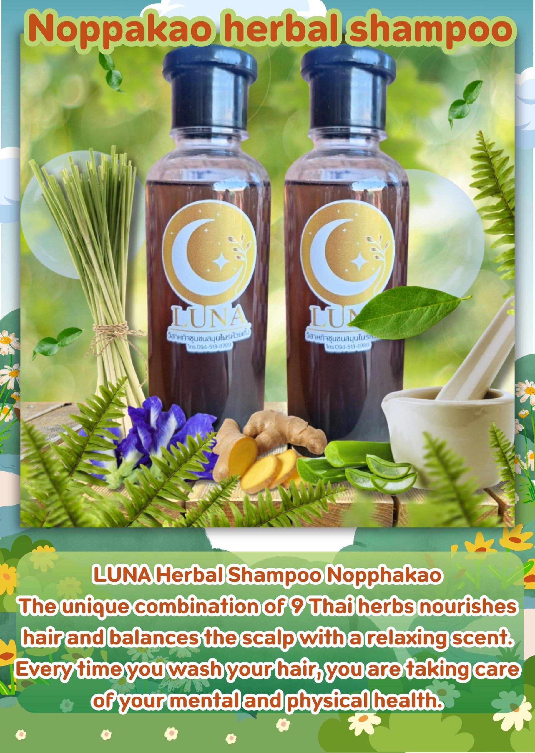 开始恢复头发的健康。 LUNA Noppakao 草本洗发水