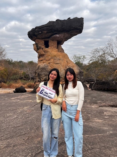 08:40 点, 到达朴菩蝙蝠历史遗迹公园,位于乌隆他尼省班普县穆恩潘乡的普潘山脚下。整个区域位于国家保护森林区——克恩南山森林,艺术局已申请使用超过3,430莱的森林区域。Phu Phra Bat Historical Park ,大多数是由自然侵蚀过程形成的沙岩,已有超过1亿年的历史。并被注册为第8号世界遗产地点。是泰国的第五个文化世界遗产地点。它也是乌隆他尼省的第二个世界遗产,紧随被联合国教科文组织于1992年列为世界遗产的‘班清遗址。