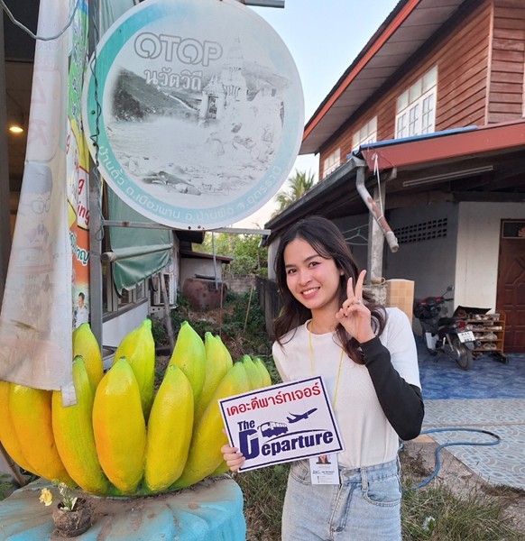 09:50 点,出发地Ban Tiew社区, Muang Pan乡,Ban Phue 县。 参观并选购社区的OTOP产品, 例如 香蕉片 、芋头片、 篮子。