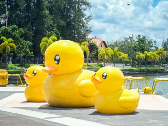 17:10 点, 到达Nong Prajak Public Park,位于乌隆他尼市区,位于Phayaniam街,Mak kheang Subdistrict乡。是一片大沼泽地自乌隆他尼市成立之前就已经存在,最初被称为“Nong Na Kluea”。位于市区的西侧,后来更名为“Nong Prajak”,以纪念乌隆他尼市的创始人,准将Phra Chao Borom ma wong Thoe, Krom Luang Prajak Silpakom。 在1987年,乌隆他尼市政府对NongPrajak进行了重新整修,以表达对普密蓬·阿杜德王的崇高敬意,以纪念其五十周年华诞。水中央的岛屿区域被布置为花园,种植了多种观赏植物和花卉,并且有一座桥连接各个岛屿。这里还有喷泉、钟楼和儿童游乐场,供市民休闲和锻炼使用。目前,有一个黄色的橡皮鸭娃娃漂浮在水面中央。它已成为乌隆他尼市的又一地标,深受游客前来拍照。